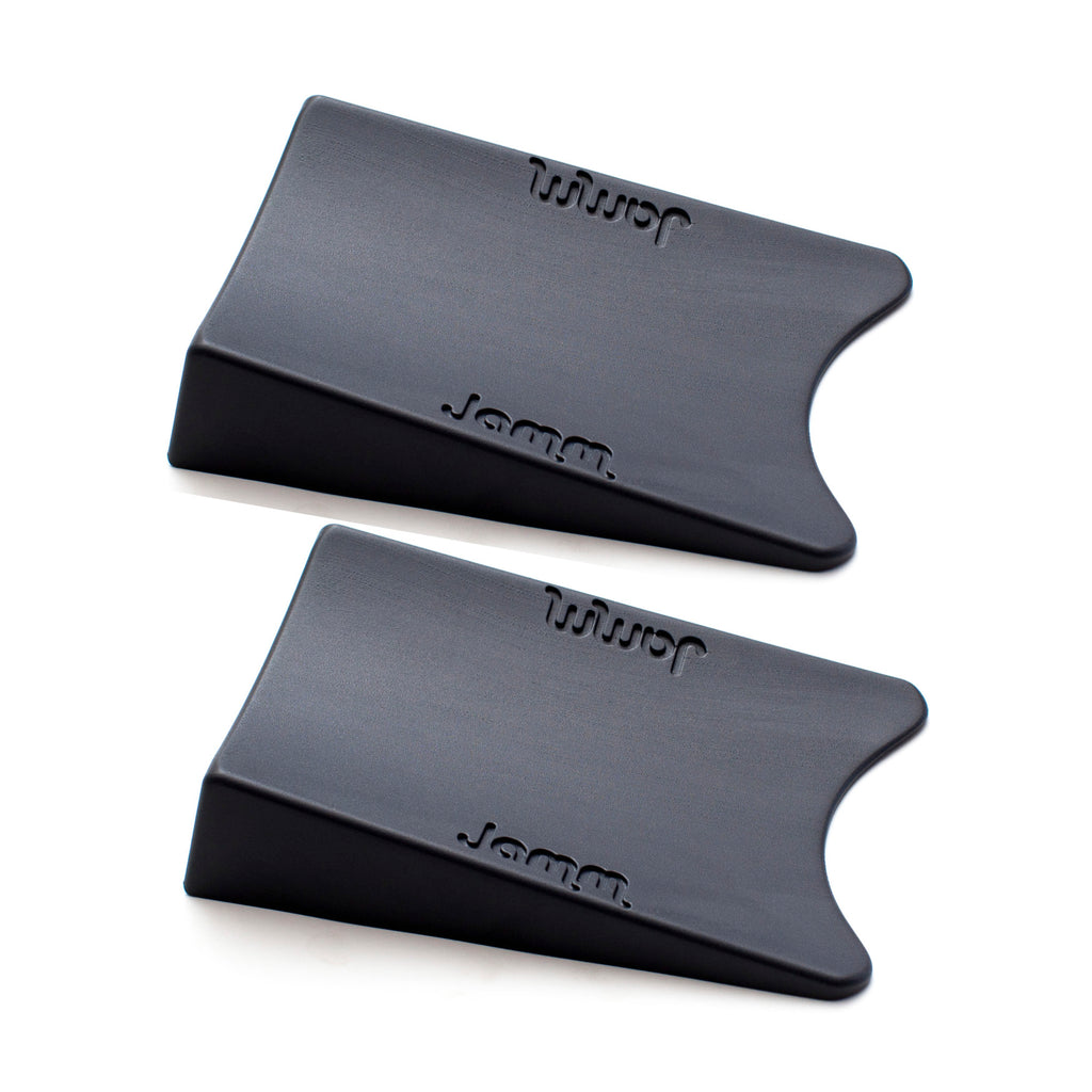 Keep doors safe and secure with the JAMM Doorstop! Unlike traditional wedges, JAMM's patented design holds both sides of the door at the same time - stopping the doorstop from dislodging and so preventing slams, injury, and damage. Simple to use, super durable. Jamm that door!